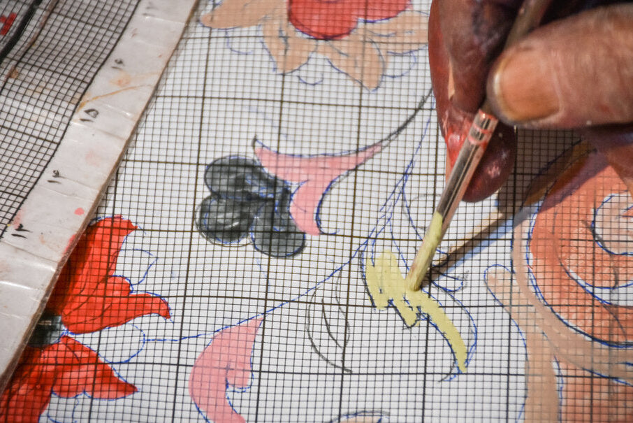 Our meticulously sourced wool or silk is transformed into fine yarn and then these artisans blend the fibers, expertly remove impurities, placing it on a charka, or spinning wheel.